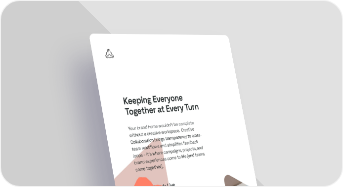 Your brand home wouldn't be complete without a creative workspace. Creative Collaboration brings transparency to cross- team workflows and simplifies feedback loops – it's where campaigns, projects, and brand experiences come to life (and teams come together). Where Brands Live frontify.com Keeping Everyone Together at Every Turn